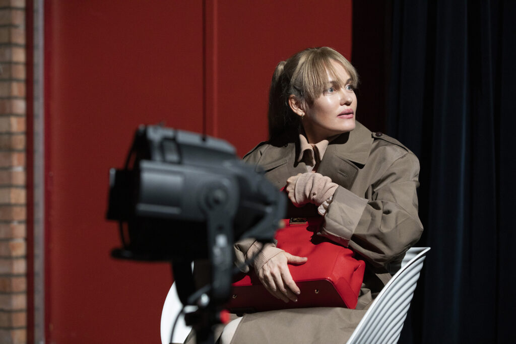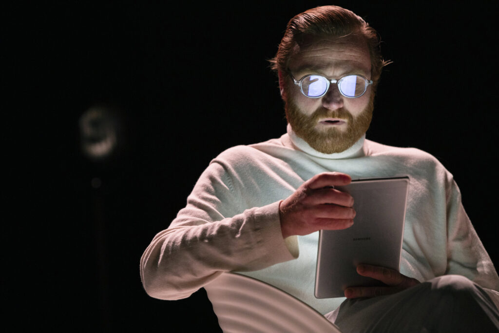 Actrice en initiatiefnemer Lotte Dunselman vertolkt met strakgetrokken huid, scherpe kaaklijnen en aangedikte rondingen de angstaanjagend succesvolle influencer Anna. (Volkskrant ★★★★)